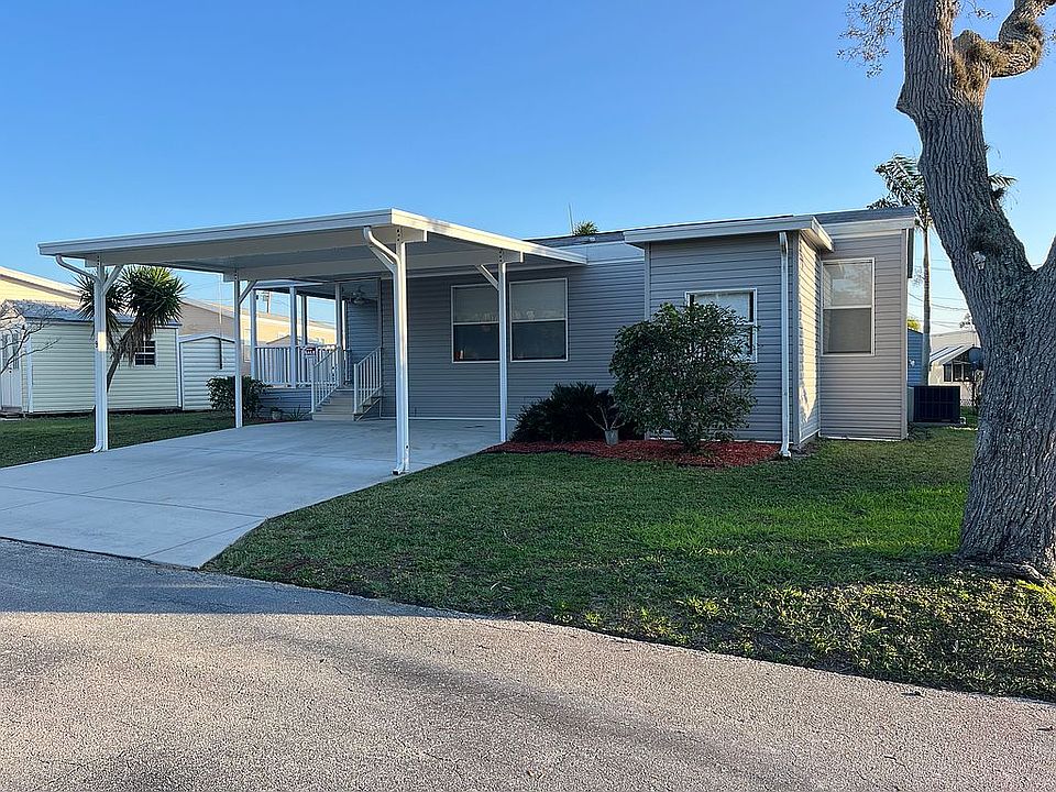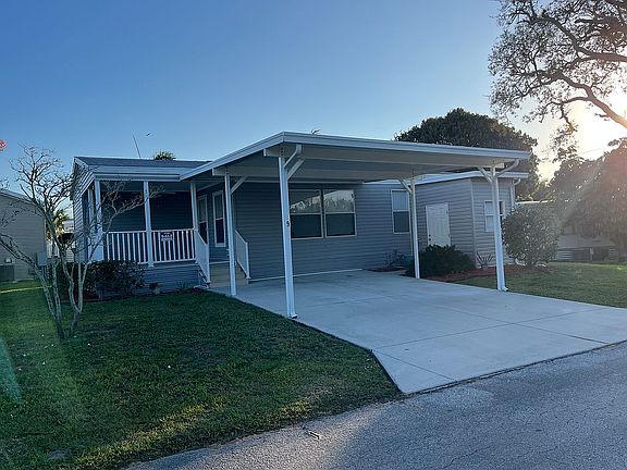 Beautiful 2/2 bath 2016 home in Pelican Bay with double car driveway and covered carport. This priced to sell home will not last long. Front covered porch with the ceiling fan, open floor plan with carpet, vinyl kitchen and hallway and bathrooms. Washer dryer hook up. Large master bedroom with walk in closet and walk in shower, plenty of storage space. Second bedroom has deep closet, room for queen size bed. Home comes with window treatments, 4 ceiling fans, dishwasher, stove, microwave, refrigerator. Low Lot rent, riverfront community. Call immediately before this moves fast. Community Info: About The Pelican Bay Mobile Home Community Pelican Bay located in Micco, FL is an age restricted community right in the heart of the Treasure Coast of Florida and close to route 95. This community has wonderful amenities and great sized lots. Pelican Bay sits right along the Indian River Lagoon and a short drive to the Sebastian Inlet for all you water lovers. Close to hospital, restaurants, shopping of all kinds, theater, airport, downtown, bars, breweries. Pelican Bay Amenities swimming pool, clubhouse, gym, computer station, horseshoes, shuffleboard, community room, community events, private fishing pier on river, corn-hole, dog park Pelican Bay Lot Fees $797 Lot Rent Includes - trash, sewer, water, all amenities, landscaped grounds Park approval is required which includes background check, credit check and income verification. fees apply Pets - 2 pets allowed (no aggressive breeds) Utilities-Comcast, Direct TV, Brevard Utilities, FP&L