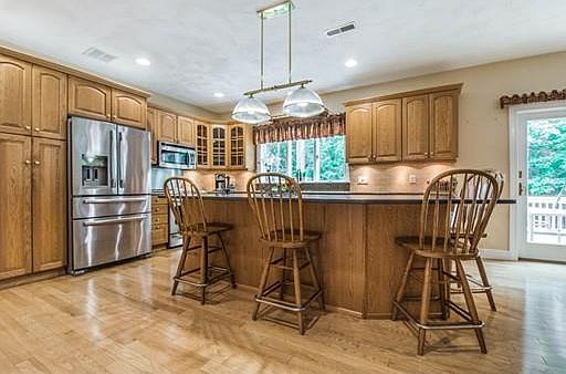 - Kit Dscrp: Dining Area, Flooring - Hardwood, Countertops - Stone/Granite/Solid, Deck - Exterior, Kitchen Island, Stainless Steel Appliances, Recessed Lighting, Slider