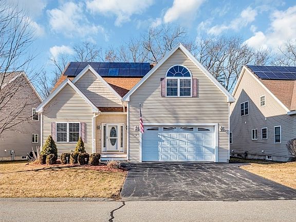 Welcome to this amazing 55+ community!! 9 Steinbeck invites you into a world of comfort and convenience. The oversized living room offers CATHEDRAL ceilings and a beautiful fireplace, perfect for a winters night. The modern kitchen boasts sleek GRANITE countertops and ample cabinet space. The FIRST FLOOR PRIMARY bedroom, features hardwood flooring, a walk in closet and its own PRIMARY bathroom with stand up shower. Just down the hall there is a spacious secondary bedroom, which has an abundance of NATURAL light and plenty of closet space. Outside, enjoy your own private deck area which overlooks the beautifully landscaped yard which provides a tranquil escape. This home offers the perfect balance of relaxation and accessibility. Additional features include: garage, irrigation, solar panels, CENTRAL AC, first floor 1/2 bath & first floor laundry. NEED additional LIVING SPACE? The 2nd floor has amazing potential to be finished & the basement has potential for a shop/living space.