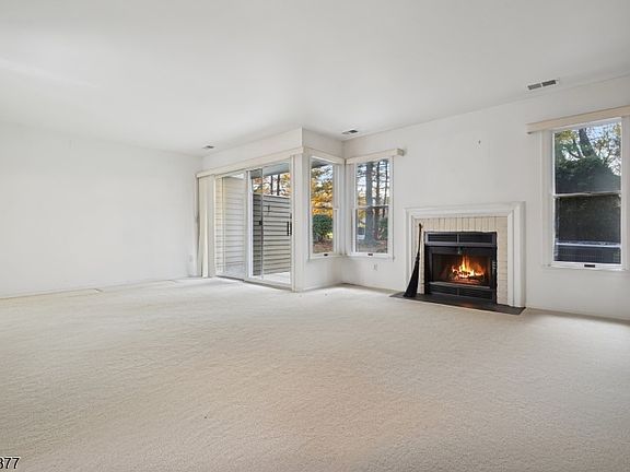 Welcome to this inviting townhouse in the desirable Hills community. This move-in-ready home features a renovated kitchen with granite countertops, a dining room, and a spacious living room with a fireplace, built-in shelves, and sliding doors that open to a private patio overlooking a generous common green space. A half bathroom and an attached garage complete the main level.Upstairs, the large primary bedroom offers a fully renovated en-suite bathroom and hardwood floors. A second bedroom with its own full bathroom adds comfort and flexibility, with laundry conveniently located on the same level. A skylight brightens the hallway, enhancing the home's natural light and welcoming feel.Ideally situated, this property is just minutes from River Road Park, the Great Swamp National Wildlife Refuge, and Hacklebarney State Park, offering easy access to outdoor recreation and the best of Bedminster living.