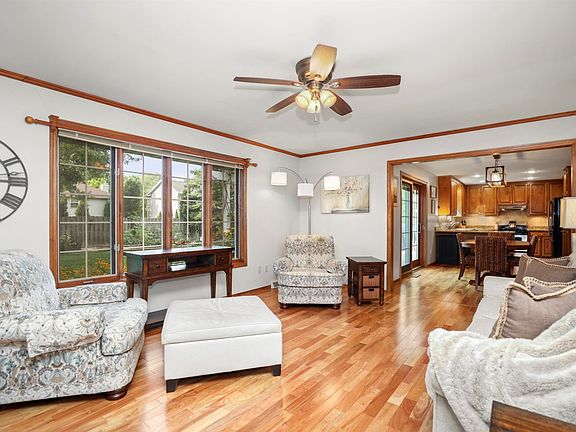 Wow! That is all you will say when you enter into this beautifully maintained 2-story home situated in a quiet neighborhood. HW floors throughout the main. Formal dining room perfect for an in home office, play room, or special meals. Kitchen boasts granite, backsplash, SS appliances and dining area overlooking the backyard. Step into your own oasis as you sit under the pergola or out onto the patio and enjoy the abundance of perennials and privacy you will find. Living room boasts wood burning FP with updated tile surround and built-in shelves. Half BA and laundry complete the main. Upstairs find all BR's. Primary BR features WIC and full BA. Need more space? Head downstairs to the LL to find a LG family room and bonus flex space. Attached garage is extra deep at 36 feet!