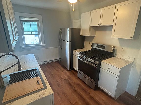 Updated 2/3 Bedroom, 1 bath apartment in downtown Westerly. New kitchen and bath, all new appliances, newly painted. Spacious living room and dining room (could be office or 3rd bedroom). Enjoy the convenience of a laundry room just off the kitchen. One off-street parking spot is available for tenant. Shared outdoor space is available for tenant. Sewage, water, trash removal, ground maintenance and snow removal is included in rent. Tenant pays for electric, gas, and cable. No smoking allowed in apartment. One dog, under 50 pounds, or one cat.
