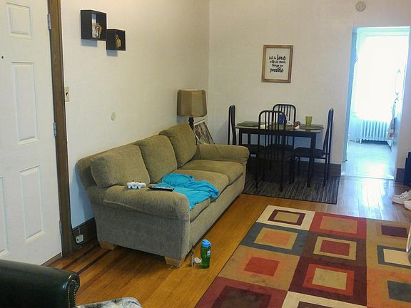 Well-lit first floor 1 bedroom unfurnished apartment. Kitchen with gas stove and refrigerator. Single bathroom with shower. It has hardwood floors, a closet in the bedroom and the kitchen has a pantry for storage as well.