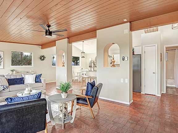 OPEN HOUSE CXLD. Perched high on a picturesque & spacious 2.39 acres, this privately gated dream home is PHENOMENAL! Cross the threshold & you'll be electrified w/excitement. Special features incl: new stucco, TPO & pitched/shingle roof, clerestory windows drench the home in cheerful natural light, vaulted ceilings, new split systems yielding cool ref air for hot summers, wood-burning LR stove to stay cozy on charming winter days, new lighting, foyer coat closet, expensively-modernized ktchn w/tons of new cabinetry & counter space / granite / SS appliances / range hood, stylish traditional brick floors, tongue-&-groove wood ceiling, decorative nichos & beams, spacious primary bdrm w/WIC, large garage w/storage area, outdoor shed, & ample places for outdoor living & to park all the toys.