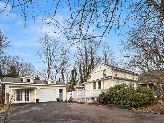 Looking for charm, space and walk-ability to Main St. Weaverville? This is it! Original details from 1915 and adorable updates with a main level primary suite as well as a second primary suite upstairs with a large renovated bath. Each bedroom has its own full bath. Private living room and sunroom make great office space, large dining room with room for entertaining. Views of Hamburg Mountain from the screened rocking chair porch, shaded by a historic oak tree with a storybook swing. Home has been used as a vacation rental and is available fully furnished for investment buyers. Its a fabulous full time home, and with the detached garage and art studio ready to finish, you could live here and still STR-Or finish & studio would be perfect for a musician, artist or someone who needs a separate work at home space.