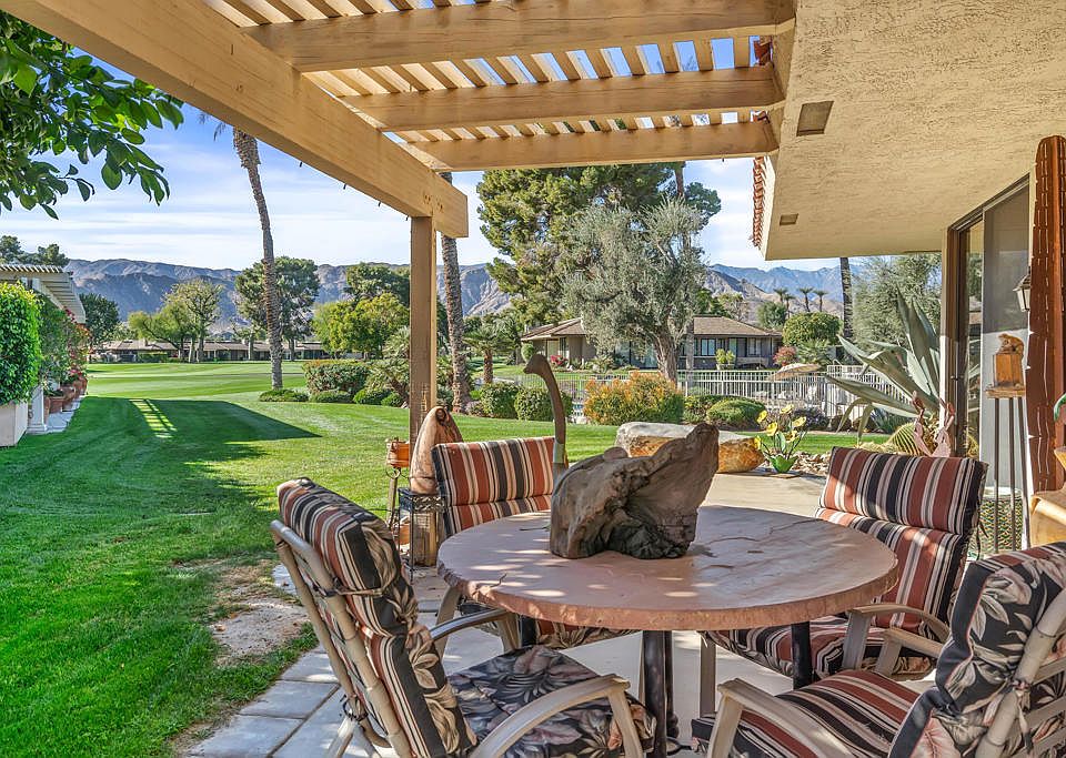 Welcome to Your Desert Oasis in The Springs!Discover Serenity on a Premier LotNestled in a quiet cul-de-sac, this exquisite home offers a rare opportunity to experience luxury and tranquility in The Springs. This property boasts breathtaking greenbelt, fairway, and mountain views that create an idyllic backdrop for your everyday life.**Elegant Living Redefined - The Augusta Floor Plan**Step inside the Augusta floor plan that has been expanded to create a larger den off the kitchen. This generous family room/den is versatile enough for all your living needs. Entertain with flair in the formal living and dining room, where a stunning Travertine slab fireplace extends to the ceiling, and a walk-in wet bar is ready for your gatherings. With walls of glass sliders surrounding the space, you'll enjoy unobstructed vistas of the magnificent landscape.There are two generous sized bedrooms with ample closet space. Both bathrooms have been designed with hand painted tiles.Outside, discover dual patios that beckon you to unwind and soak in the expansive greenbelt and mountain views. Just steps away, one of the community's pool/spas offers a private retreat, blending the convenience of a nearby amenity with the feel of your own personal oasis.**Ample Space for Your Lifestyle**The property includes a spacious garage, perfect for accommodating a golf cart and two vehicles. An oversized laundry and storage room provides extra functionality and convenience.**Resort-Style Living at The Springs**The Springs isn't just a place to live - it's a lifestyle. Enjoy direct access to the 18-hole Desmond Muirhead world-class golf course, along with tennis, pickleball, and a state-of-the-art fitness center. With a vibrant community spirit, partake in endless social gatherings and indulge in several on-site dining options.**Prime Rancho Mirage Location**Situated in the heart of Rancho Mirage, this home offers proximity to cultural and historical landmarks including the iconic Annenberg Estate. Ease of access to the Eisenhower Medical Center ensures peace of mind, while upscale shopping, dining, and entertainment are just moments away.**Your Dream Home Awaits**If you seek a harmonious blend of elegance, comfort, and convenience, look no further than this extraordinary home in The Springs. Come experience the perfect balance of luxury living against a backdrop of natural beauty.