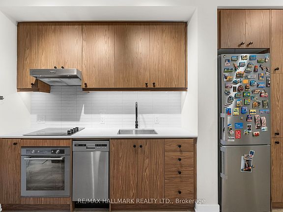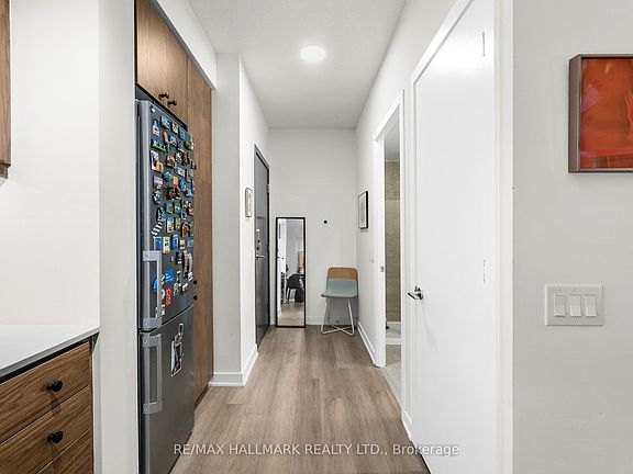 Welcome to Unit 207 at 9 Tecumseth Street - an elevated downtown residence offering refined, contemporary city living. This thoughtfully designed 2-bedroom, 1-bath suite features 709 sq ft of elegant interior space, complemented by a rare 300 sq ft wrap-around balcony that seamlessly extends the living area outdoors-ideal for relaxing, entertaining, or enjoying the city year-round. Floor-to-ceiling windows fill the home with natural light, highlighting wide-plank flooring and a sleek, modern kitchen complete with integrated appliances, quartz countertops, and laminate cabinetry featuring a warm, natural wood grain finish. The open-concept layout balances style and functionality, while the spa-inspired bathroom, in-suite laundry, and well-proportioned bedrooms complete the offering. Meticulously maintained and less than a year old, this suite is move-in ready and suited for discerning end-users or investors alike. Set within a well-managed building featuring premium amenities, this location elevates everyday living. Step outside for immediate access to daily conveniences, including Farm Boy, Dollarama, Stackt Mkt, and an array of cafés and local shops. Enjoy seamless connectivity with Bathurst and King Street transit just minutes away, while the waterfront, scenic trails, and green spaces are close at hand. Surrounded by the energy of King West's renowned dining, nightlife, and cultural scene, this home offers the perfect balance of urban vibrancy and lifestyle ease. This is downtown living-refined, connected, and effortlessly elevated. *Current Tenants are in agreement to vacate prior to closing*