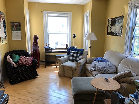 NO FEE Super Close to DAVIS SQUARE - Red Line T 1 block to bike path. Sunny 2nd floor of a three family. Bright open living room and dining room with hardwood floors. Large eat-in kitchen. Gas stove. Refrigerator included. Washer/Dryer and storage room in basement. Tenants pay gas and electricity. 1 year lease. 1 month security deposit. Pleasant back yard with furniture and grape arbor for BBQ's. Not deleaded. No dogs or smoking. Indoor cat OK. Street parking with permit. Owner pays for water and sewer. Tenant pays for gas and electric. One year lease. No smoking in or around building. One indoor cat is OK.