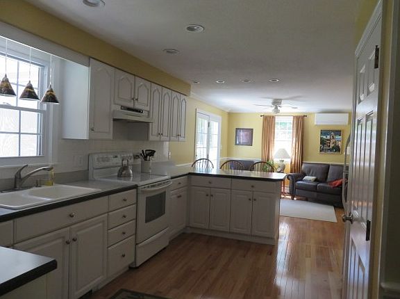 Beautiful, bright open concept. First floor kitchen island in sunny kitchen to gather your friends. Gleaming hardwood floors and crown molding. This whole house has been done over and updated, including new Windows, updated kitchen and baths. This home has 3 bedrooms, 1.5 baths, Living room, Dining room, bright family room with lots of windows. Fireplace in a cozy sitting room. Large kitchen with Island and plenty of room for a kitchen table or sitting area.Three good size bedrooms, the master is the width of the house Central Air to add to this great house. Nice Deck and Screen porch to enjoy warm summer evenings overlooking your lovely yard. Professionally landscaped with new granite steps, stone walkway out to driveway. PLUS Irrigation.