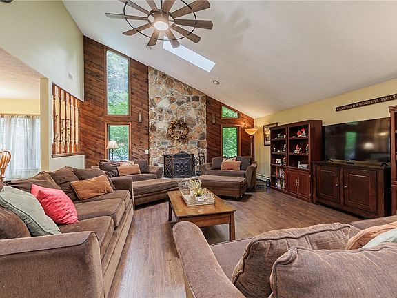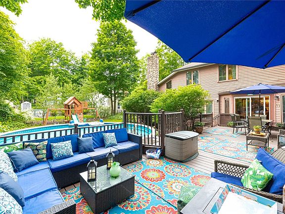 Made it past delayed negotiations!! The picture-perfect Brockport colonial is here!! Lovingly maintained, this charming home is not one to miss! Enjoy the open floor plan & flow of the family & living rooms which each feature beautiful vaulted ceilings & skylights. Cozy up this fall to the recently-inspected wood burning fireplace & Enjoy the convenience of first-floor laundry. The newly remodeled finished basement lends itself to multiple uses including: a bonus rec room, office and possible bedroom with egress window, complete with a full bathroom! Walk right out on to the serene patio deck that leads to the heated above-ground pool. This beautiful backyard offers a large playset on one side and a private landscaped outdoor firepit on the other, ideal for entertaining and relaxing! New pool pump '23, new paint on lower level wood deck '24, new gutters '24, boiler and hot water tank inspected yearly, remodeled basement bonus room '24, updated first floor powder room '21, kitchen remodel '22, new carpets '22, new paint throughout '22. Delayed Showings until 6/13, Delayed Negations: 6/18 @ 7PM.