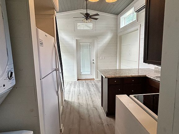 New tiny home in a small lakeside community. This tiny home has a large screened porch, lake front access, a shared firepit outside, and fully equipped kitchen. The built-in desk space is perfect for working from home. There is extra storage under the staircase and additional storage is available on the property for tenants. All amenities are in the kitchen except for dishwasher. Washer and dryer are in the unit. Renter pays $100 for utilities, which includes water, electricity, gas, sewer, and garbage removal. Small pets are allowed in the home with a $250 security deposit. This home is move-in ready with first months rent and deposit. SPECIAL OFFER: Rent is $1100 for the first 6 months of the lease as an introductory offer and then raises to our regular rate of $1250 for the remainder of the lease. 12 month minimum lease.