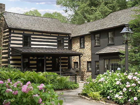 Modern features: A chef’s kitchen designed to please the most discriminating cooks, includes custom solid wood cabinetry, topped with Carrara marble counters, and two Carrara marble deep farm sinks. A distressed painted 12-foot antique hutch, built-in butler’s pantry, two Subzero refrigerators, 2 built-in Gaggenau wall ovens, a Viking warming drawer and a Viking gas cooktop with griddle attachment which is perfectly centered in a soapstone counter, accented by a white ceramic tiled backsplash and built-in custom-designed brick arched cooking alcove that was constructed on-site using stone from a 1750’s home. The breakfast room is handsomely detailed by an authentic wood ceiling beams and a large fireplace constructed from the remnants of the same historic home as the kitchen’s fireplace. Other timeless attributes include 104 custom true divided light double-hung windows constructed with blown glass and pins authentically depicting the 1700’s era.