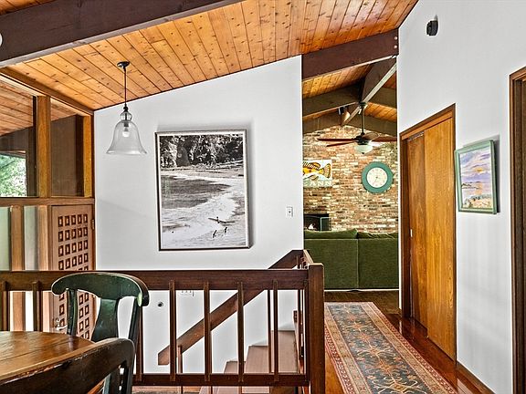 Nestled on 3+ acres of pristine land, this authentic Deck House exemplifies the harmony of modernist architecture and natural surroundings. Floor-to-ceiling windows frame the serene landscape, while soaring ceilings and an open floor plan create an airy, light-filled sanctuary.The home features a lovely kitchen that flows effortlessly into the dining area and family room, where a statement fireplace serves as a gathering point for year-round entertaining. Multiple sliding doors open to an expansive deck—perfect for indoor-outdoor living and taking in views of the tranquil private pond.The primary suite offers a spa-like bathroom and peaceful views of the grounds. The lower level hosts two additional bedrooms, a full bath, and convenient laundry facilities.This architectural gem provides the ultimate escape, where modernist design meets nature's canvas. The sprawling grounds offer endless possibilities for gardening enthusiasts while ensuring complete privacy.