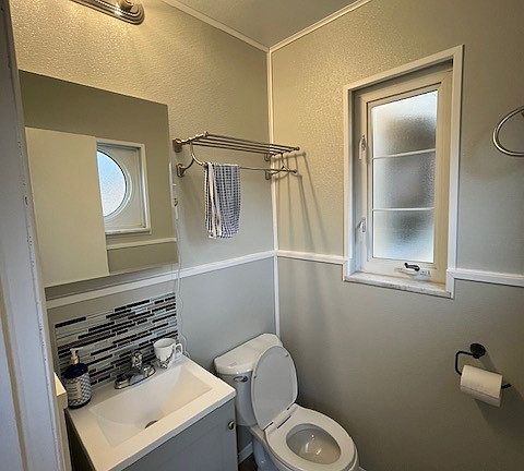 2 bedrooms on main floor, 1 on basement level (above ground).