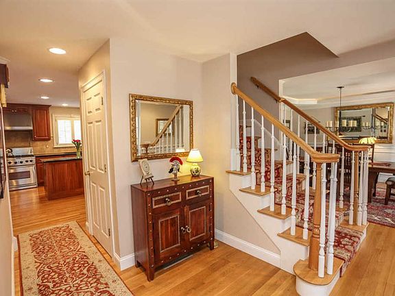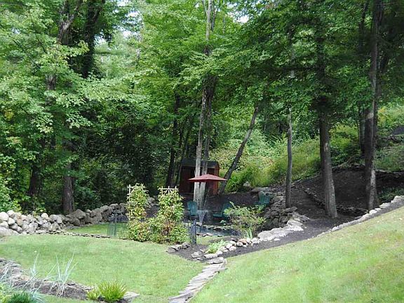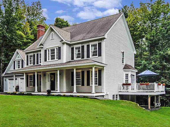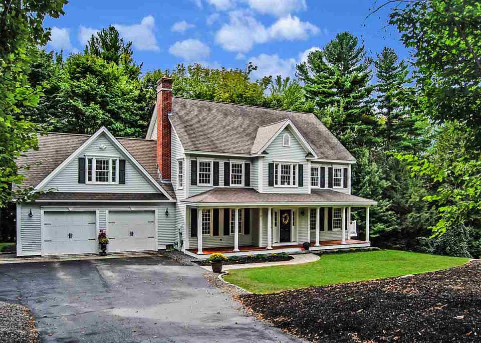This Colonial with farmers porch is sure to please. Well cared for and meticulously manicured this home sits at the end of this cul-de-sac and offers privacy and a super convenient location. Upon entry you feel the warmth and inviting floor plan of a traditional Colonial; with the flow and open functionality for easy daily living and entertaining. Spacious eat-in-kitchen with island and bar area are the heart of the home which opens to the living room, dining room with a lighted tray ceiling and eat-in kitchen area with French doors onto the deck. Beautiful custom cabinets, granite countertops, hardwood floors, wood FP in formal living room, custom details throughout with wood plantation shutters and a half bath & laundry on 1st floor, irrigation and a generator. Master en-suite has a spacious full bath and walk in closet and are separate from other bedrooms. Need a home office? There is a nice office off the 2nd and 3rd bedroom. Family room above the garage with gas fireplace is a crowd pleaser with guests. Finished lower level with a walkout to another deck and hot tub with pergola lends itself to the ultimate relaxation to end the days of cool Spring evenings. Mature landscaped yard with several ponds and a shed really add to the ambiance. Highly rated schools, just 15 miles to Manchester airport, lots of wonderful trails nearby, golf, and a great down town center to enjoy. Original owners have lovingly cared for this home so don't miss out.