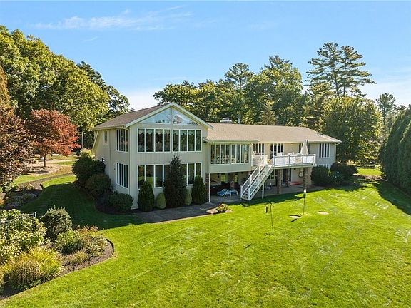 For those seeking an extraordinary place to call home, 9 Veronica Court is it! This completely renovated waterfront home sits on just shy of an acre of meticulously manicured land with beautiful perennial gardens and a stunning inground pool. This 4,820 sq. ft. home offers 4 beds, 3 full baths, water views from most rooms, and endless possibilities in the finished lower level. The chef's kitchen, remodeled in 2018, boasts a Frigidaire Professional refrigerator, a high end Thor 6 burner range, oversized center island, and beautiful dining area with views of the lake. The primary suite, remodeled in 2020, features a sitting room where you can take in the serene water views and a sumptuous primary bath with an air jet soaking tub, large glass enclosed shower, and 2 separate vanities. An added surprise is the private enclosed hot tub with stunning views! The first level is completed with 3 ample sized bedrooms, a full bath, a sunlit living room with wood burning fireplace that is open to the dining room, and a family room with built in bookshelves. The lower level provides a walkout in-law/ guest/ flex area with French doors to the patio. Completing the lower level is an additional family/rec room with gorgeous stone gas fireplace and bar area, theater room, renovated full bath, and an additional bedroom. Step outside to enjoy a swim in the pool, a boat ride around the lake, a glass of wine around the firepit and watch the sunset. Simply an incredible opportunity!