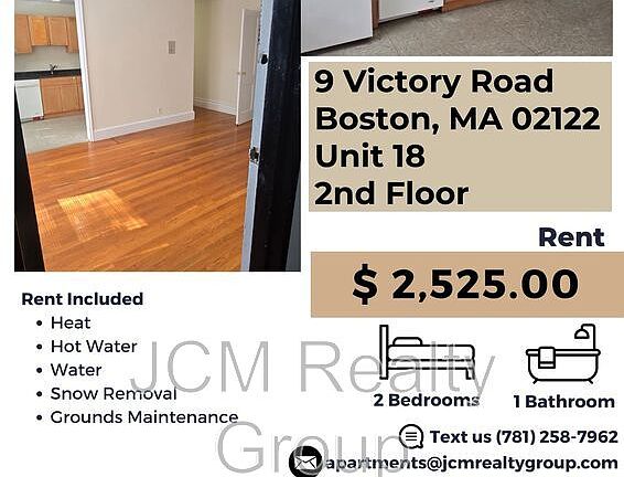 Fantastic location right between Adams Street and Neponset Ave. Heat and hot water included in this 2nd floor two bedroom unit. Eat-in Kitchen with new cabinets, new countertops, new flooring and stove. Newly refinished hardwood floors throughout and an updated bathroom. Off street parking for one car and on site laundry. Section 8 tenants welcome. No pets, No smoking. Professionally managed building. We conduct a credit and background check on all applicants.