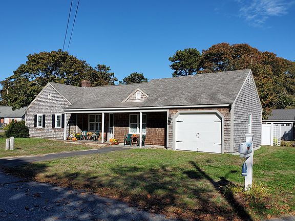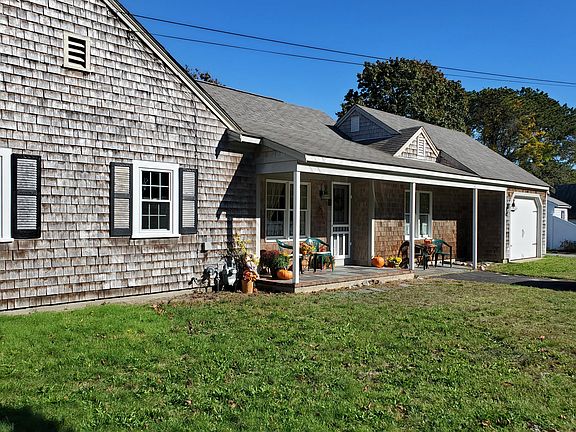 Treasured & charming Harwich Port home is ideally located between ocean beaches, harbors, golf & the lively, quaint Village! Leave the car in the garage & enjoy a short .4 mile walk to ALL these sites for swimming, boating, shopping, dining, browsing art galleries, golfing or musical events! The spacious ranch features a gorgeous kitchen with cathedral ceiling, large granite counter with island & breakfast bar. Montclair Maple cabinets, pine floors & an Andersen slider leading out to a sunny wood deck are highlights. Through the french doors, step down to an open renovated grand family room with beams, ceiling fan, raised granite gas fireplace & recessed lights. A primary bedroom with built-ins & slider to deck has a full bathroom & remaining two bedrooms are connected by a cozy living room with log burning fireplace. Completing this first floor design plan is a full size stackable washer & dryer, updated hallway bathroom & garage. Also an outdoor shower & shed in backyard for storing tools & beach chairs.. Property is sited on a quiet cul-de-sac. Note: slider needs replacement & septic is on schedule for new D box. As-Is sale.