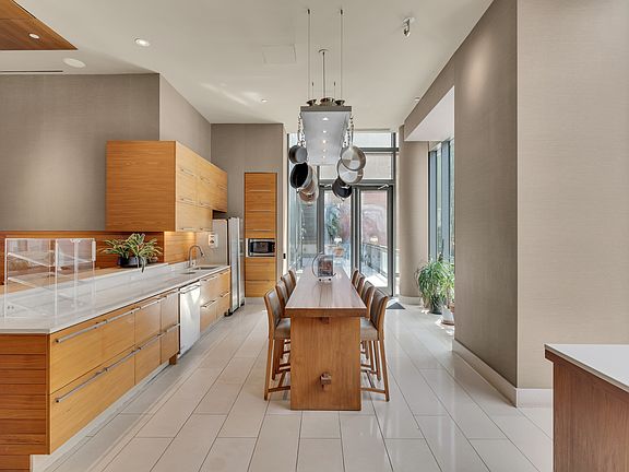 Apartments feature floor to ceiling double-paned windows, some with amazing city views, white oak strip floors, 9 foot ceilings, ample closet space, and are pre-wired for high speed internet. Kitchens include honed granite countertops, Moen sinks, GE Profile stainless steel appliances, porcelain tile floors and mosaic tile backsplash. Bathrooms include porcelain tile floors, Luna marble tub surround, and oversized showerheads.