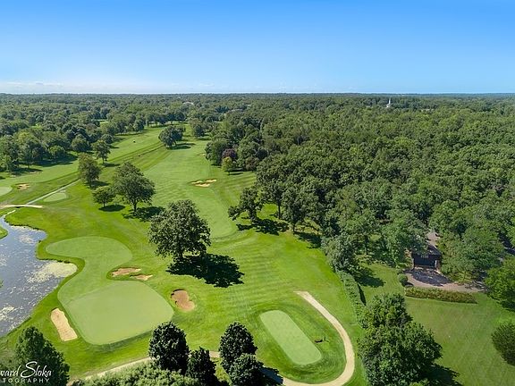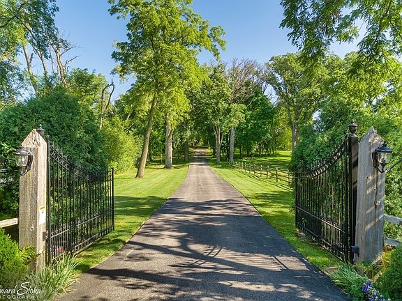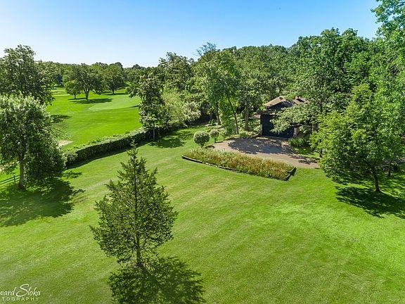 Dramatic one-story home with Million dollar views and once in a life-time setting overlooking Barrington Hills golf course. The home was designed by Robert Parker Coffin, Jr. to take advantage of the wooded setting, golf course and nature views from every room. A gated entry & private drive leads to this wooded setting approx. 800 feet off of County Line Road to a custom 2/3 Bedroom home. The interior of the home features grand flowing rooms, high ceilings and walls of glass. The floor plan provides wide open spaces for entertaining including a Great Room at the center of the home with a magnificent stone fireplace, beamed vaulted ceiling, hardwood floors and doors to the wrap around deck and lush backyard. The large gourmet kitchen has custom wood cabinetry, granite counters, an island, hi-end appliances, commercial style range, walk-in pantries, a service bar which opens to the Great Room and a spacious dining area with it's own stone fireplace. The Master suite offers built-in cabinets, wardrobes and his & her vanities / dressing rooms. There is a 2nd Ensuite Bedroom with hardwood floors, double closets and built-in desk. A large Library is the perfect quiet space for a home office with three sides of windows and views; the adjacent full bath allows this room to also serve as a a 3rd/Guest Bedroom. The home and rare setting has been in the family for most of its years and is a special opportunity to live on a private wooded golf course setting. Showings Allowed and Virtual Tours available upon request.