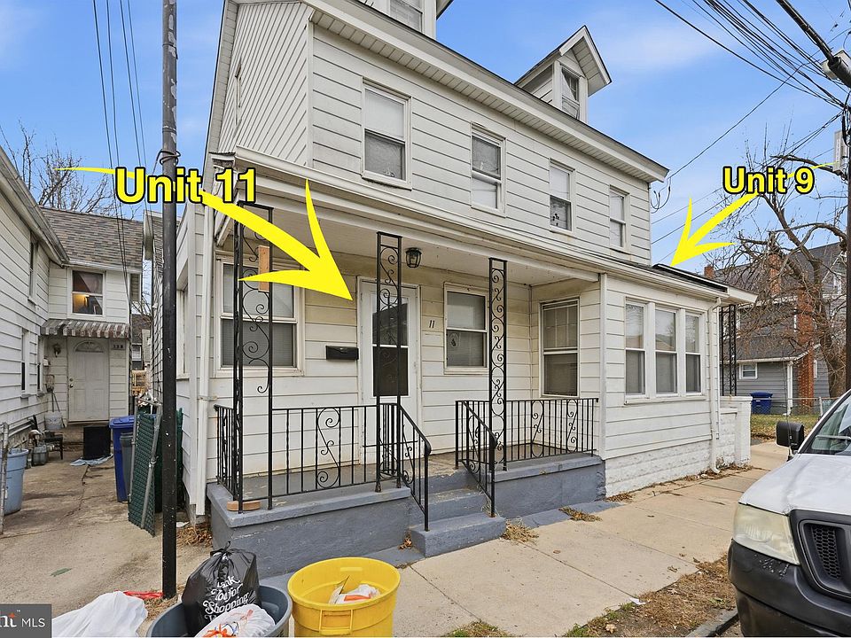 Multifamily Investment Property Opportunity in the heart of Mount Holly, NJ. Unit 9 (Right) is a 1 Bed / 1 Bath, Currently Vacant, Fair Market Rent for this unit is $1,660/mo per HUD 2026. Unit 11 (Left Side) is a 3 Bed / 1.5 Bath, Currently Vacant. Fair Market Rent for this unit is $2,370/mo per HUD 2026. Total FMR is $4,030/mo. One Gas Meter and 2 Electric Meters. The property has one Radiator Heater Shared and 2 Separate Gas Water Heaters, 2 Separate Electrical Panels. There is also a large 2 car detached garage in the back, which has electricity. This property is being conveyed in as-is condition. The Buyer is responsible for all due diligence, repairs and for obtaining the Certificate of Occupancy. Also available to purchase as a package with 13 W Monroe St, Mount Holly (another Duplex) which is currently listed for $200,000.