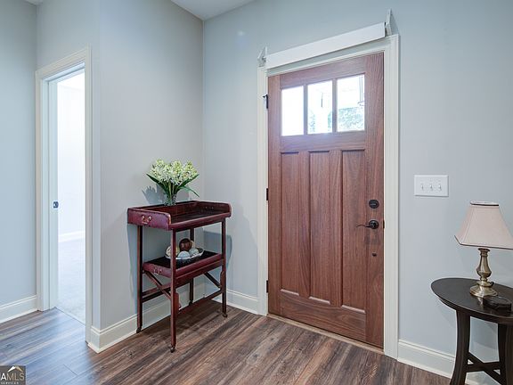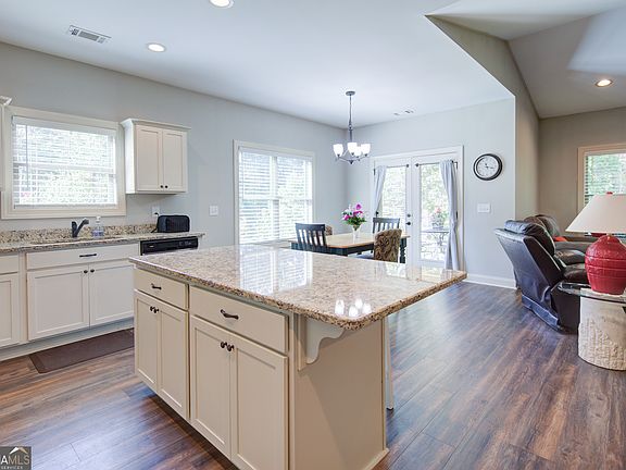 Experience the Charm of North Georgia Living! Discover this stunning, move-in ready ranch nestled in the heart of picturesque North Georgia. Featuring a highly desirable split-bedroom layout, the private owner's suite is tucked at the rear of the home, offering serene views of the lush tree line-a peaceful sanctuary away from the other bedrooms. With three bedrooms and two-and-a-half baths, the master suite impresses with spacious walk-in closets, a raised double vanity, and a luxurious separate tub and tile shower. Sunlight fills the open floor plan, highlighting granite countertops, custom cabinetry, and a large kitchen island, perfect for family gatherings or entertaining friends. Thoughtful upgrades throughout include a solid hardwood front door, ceiling fans, custom blinds, and luxury vinyl plank flooring in the main living areas, with soft carpet in the bedrooms for added comfort. Step outside to the covered back patio to enjoy morning coffee or evening relaxation, while the corner cul-de-sac lot, long driveway, two-car garage, and generous yard provide space, privacy, and convenience. Just minutes from downtown Dahlonega and Dawsonville, with easy access to dining, shopping, and the University of North Georgia, this home blends elegance, comfort, and modern convenience. A rare true North Georgia ranch, meticulously maintained and ready to welcome its next owner.