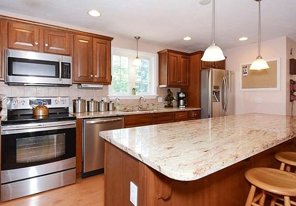 - Kit Dscrp: Flooring - Hardwood, Countertops - Stone/Granite/Solid, Kitchen Island, Recessed Lighting
