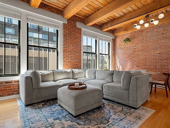 Style and sophistication join forces in this classic brick and beam residence with an open concept kitchen featuring modern cabinetry, stone counters, and stainless steel appliances. High ceilings and oversized windows accentuate the industrial style this home exudes. Plenty of space for a sectional or sofa/loveseat combo, and a dining table too. The beautiful wood beamed ceilings bring a calming natural feel to the space. Lots of upgrades in this unit too including newer appliance package, and totally new HVAC system (over $20,000). Great en-suite bedroom too with walk-in closet! In unit washer/dryer. Deeded garage parking too! Court Square Press is a full service luxury condominium featuring 24/7 concierge, on-site fitness facility, beautiful common areas including a central courtyard, and a 15,000 sq ft roof top pool terrace with BBQ's, and views of the city skyline. Located in one of Boston's hottest neighborhoods with award winning restaurants, The T, Starbucks and more!