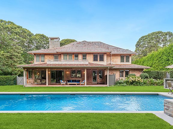 Nestled in the highly coveted North Haven community, this updated 5,100 ± sq. ft. shingle style residence blends timeless Hamptons charm with modern sophistication. Set on 0.74 acres of professionally landscaped grounds, the home offers exceptional privacy, resort-style amenities, and close proximity to Sag Harbor Village, Shelter Island Ferry, and pristine bay beaches. A grand open floor plan features a top-of-the-line Robert Bakes kitchen with marble counters, Sub-Zero fridge, Viking Stove, Viking beverage cooler, a convection steam oven, and dual Miele dishwashers ideal for both entertaining and everyday living. The light-filled living room is anchored by a wood burning fireplace, oak hardwood floors, and walls of glass that open to the landscaped outdoor living areas. The home offers five spacious bedrooms and six-and-a-half spa-style baths, with radiant heat, plus a dedicated office and bonus room. The primary suite is a serene retreat with a fireplace and private deck overlooking the lush pool and landscape. Four en suite guest suites offer elevated comfort and style perfect for entertaining. Step outside to a newly refinished heated PebbleSheen pool and spa with waterfall, a pool cabana, and outdoor kitchen all surrounded by professionally landscaped perennial gardens, stone hardscaping, and herb gardens designed for beauty, serenity and functional outdoor living. Additional highlights include a covered porch, outdoor shower, irrigation system, Sonos throughout, geothermal HVAC, and a two-car garage. Residents enjoy private beach access, community tennis, and effortless access to world-class dining, yachting, and cultural attractions in Sag Harbor. This North Haven gem represents the pinnacle of Hamptons living. A retreat where days unfold with quiet luxury and coastal ease.