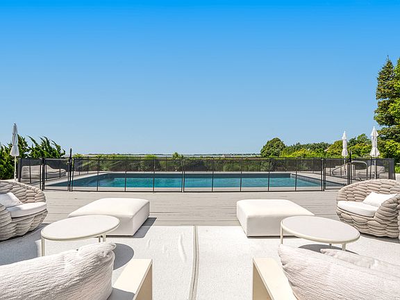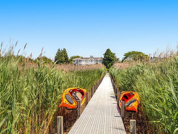 Rental Registration #: Pending In a world class setting deep in Water Mill South, with a dock on Mecox Bay, and panoramic views of the Atlantic Ocean beyond, this bright and airy 5 bedroom shingled, modern beach house with heated pool and scenic outdoor spaces is a new and exceptional summer rental offering. Set on a private and manicured 1.45 waterfront acres, the home and outdoor spaces profit from beautiful southwestern exposure for all day sun and magical sunsets on the bay. Beyond the entry foyer, the house reveals dramatic waterfront vistas from rows of windows in nearly every room. The expansive living room with fireplace has multiple sets of French doors that open to the broad rear deck with sitting and dining areas around the heated pool. The adjacent sitting room and the formal dining room have walls of windows for beautiful water views. The spacious, gourmet, eat-in kitchen has counter and island seating. A powder bath, laundry room, garage, and two guest bedroom suites complete the main level. The upstairs offers perhaps an even better vantage of Mecox Bay and the ocean from an airy landing with fireplace and access to the balcony. The voluminous primary bedroom suite has gorgeous views, a private balcony, and expansive bath. Two additional and well appointed bedroom suites complete the upstairs. A rare opportunity to rent a stylishly appointed beach house in a magical waterfront setting, convenient to ocean beaches and some of the best farm stands in the Hamptons.