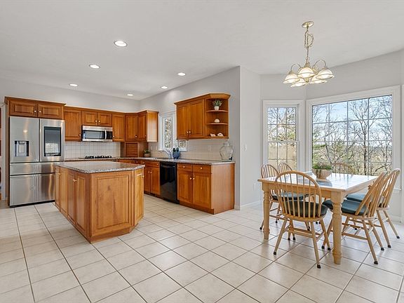 Stately colonial nestled in the Ledge Hill neighborhood. Walk into a grand two-story foyer that leads to formal living room, and elegant dining room. Eat-in kitchen boasts cherry cabinetry, island w/storage, and a charming breakfast area framed by large windows. Step down into the inviting family room, complete with a cozy fireplace. A convenient mudroom includes a walk-in pantry and laundry area. Second floor access by 2 staircases, primary suite, featuring a sitting/makeup area, two walk-in closets & bath w/ jetted tub. Three additional bedrooms, two full baths, and a versatile bonus room/5th bedroom provide plenty of space for family & guests.The finished walkout basement is designed for flexibility, offering space for a media room, gym, play area, and an additional half bath. Outdoor enthusiasts will love the private sport court, perfect for basketball, pickleball, & tennis.This exceptional home is a rare opportunity to own in one of the area's most coveted communities.