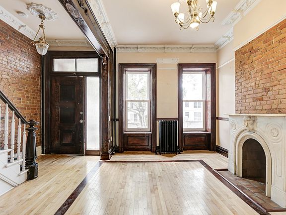 24 hr notice. Commuter's dream, this attractive 3 bedroom and 1.5 bath elegant townhouse duplex is situated in the desirable Marion neighborhood of Journal Sq and is in close proximity to the JSQ Plaza PATH! Enter your home to beautiful mahogany wood trim archways accentuating the ornamental historic elements of this home, while the lightly colored oak hardwood floors give a "pop" factor through out. The master bedroom located on the first level is very spacious with double closets, marble mantle, tall pocket doors, and the most adorable half bath reminiscent of the Victoria era with black and white penny tile flooring and subway tiles. The upper level features two additional bedrooms, a full size bathroom, and a galley kitchen with stainless steel appliances, including a refrigerator, gas oven range, and microwave, granite counters, and modern cabinetry. Laundry is located in the basement of the property with direct access from the apartment. Two outdoor lamp posts light up the front terrace of the property designated for the enjoyment of this apartment. Pets considered on a case by case base and a pet fee will apply. Schedule a private showing today! As an added bonus, landlord will pay half broker's fee for a Sept 1 move in date! No pet fee! Owner pays half broker's fee. Owner pays for water and sewer. Tenant pays for gas and electric.