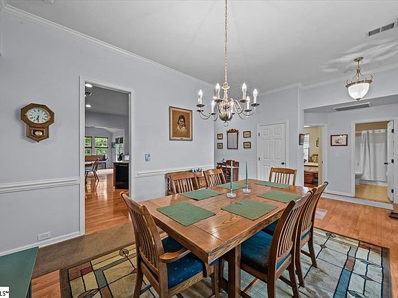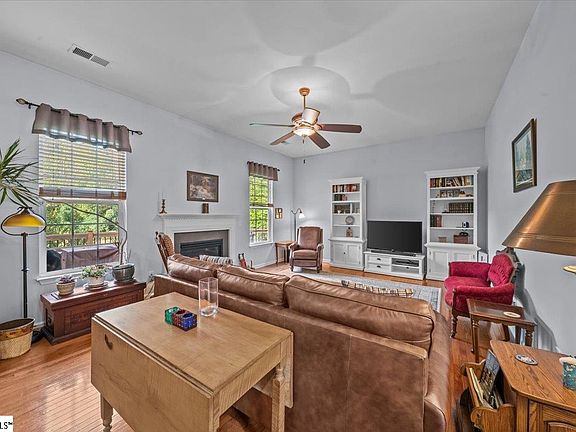 ***OPEN HOUSE SUNDAY 10/12 2-4 PM***Welcome to this meticulously maintained one-level home, perfectly situated on a level lot with a private backyard in a quiet cul-de-sac. Located in the highly sought-after Woodland Creek subdivision, you’ll love being just 2.5 miles from downtown Travelers Rest and the popular Swamp Rabbit Trail! Step inside and immediately notice the hardwood floors throughout the home (yes—even the bedrooms!), 9 foot ceilings, and an inviting open layout. To the left of the foyer, the formal dining room showcases crown molding, chair rail detail, and a large window that fills the space with natural light. The spacious great room has a cozy gas-log fireplace, large windows and the room opens seamlessly to the kitchen and sunroom. The kitchen has updated quartz countertops, abundant cabinetry, a pantry closet, a breakfast area and convenient access to the dining room for easy entertaining. Just off the kitchen is the sunroom which features a vaulted ceiling and walls of windows overlooking the private backyard and leads outside to the large deck—ideal for grilling, gatherings, or simply enjoying the peaceful setting. In the primary suite enjoy a trey ceiling, generous walk-in closet, and a ensuite bathroom with dual sinks and a separate stall shower. In this split floor plan the two additional bedrooms, and a full bath are located on the opposite of the home. Additional features include laundry room, ample storage with multiple closets, a tall crawl space, 2 car garage with extra parking pad and a community pool! This home has move-in ready magic: comfort, style and convenience —all in one of the most desirable areas of Travelers Rest. Schedule your showing today!