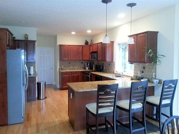 This home is a fantastic example of privacy and grandeur. Extensive hardwood flooring. Turned hardwood staircase. Nine foot ceilings. Granite and Stainless eat-n-kitchen that opens to the family room with fireplace. Large master suite with 3 closets and bath. 28 foot maintenance free deck. Easy commuting, just 30 minutes to either Manchester, Concord or Portsmouth.
