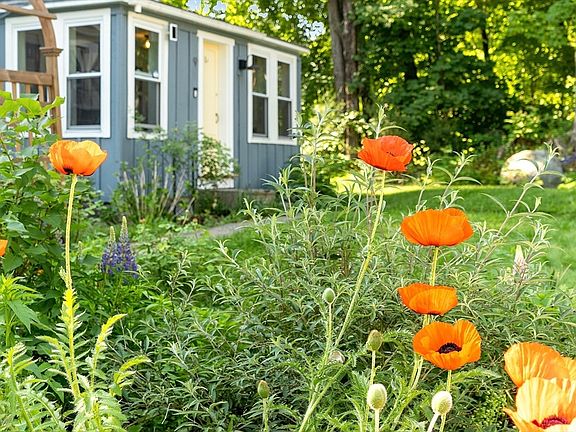 This Sun Filled Bungalow in Ashburnham is a Delightful Retreat! Its proximity to downtown Ashburnham, Cushing Academy, and the Ashburnham Rail Trail makes it a prime location for convenience and recreation. The Garden walkway and cozy 3 season porch sets a welcoming tone, and the hardwood or tiled floors add to the home's character and easy maintenance. The updated vanity in the bathroom, cabinetry in the kitchen, new high end appliances, and a spacious laundry closet (for a full-sized washer/dryer) are practical and attractive features. The new slider leading out to the large private back deck provides a perfect spot for outdoor relaxation, entertaining, or enjoying the abundant perennial gardens. Two single bay garages on the property offer plenty of room for storage. The newer windows, french door, and solar augmented hot water tank offer energy efficiency. You will be pleased with the comfort, convenience, modern and antique touches, as well as a slice of New England charm.