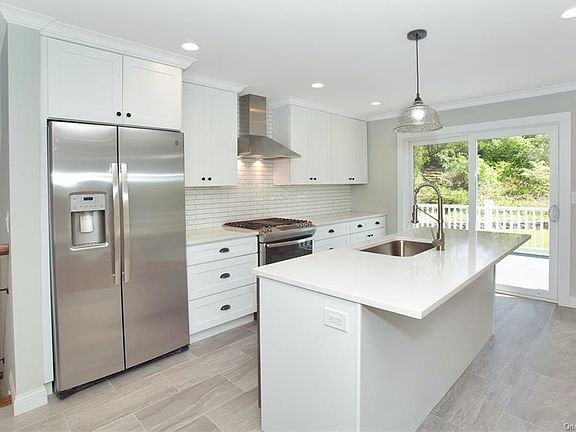 Renovated from soup to nuts-split style home has been transformed into a gorgeous home with every hallmark that today's discerning buyer wants. Stunning white kitchen with island, stainless steel appliances, renovated baths featuring beautiful accessories. Sitting on .52 acre of lush land this dreamy house is ideal for entertaining and much more. Spacious master with bath and walk in closet. Double sink vanity in hall bath. Three additional bedrooms. First floor bedroom can be used as an office. 2 great outdoor spaces include a sprawling deck and an inviting patio off the family room. Turn the basement which is an additional 640 square feet of legal space complete with a powder room into a playroom, gym, screening room. Two car garage. Ample room to build a pool and still have land. Don't miss this one because there is nothing to do but move in and enjoy! Spend the summer socially distancing in style and comfort! Pinebrook Estates has its own playground and basketball courts.