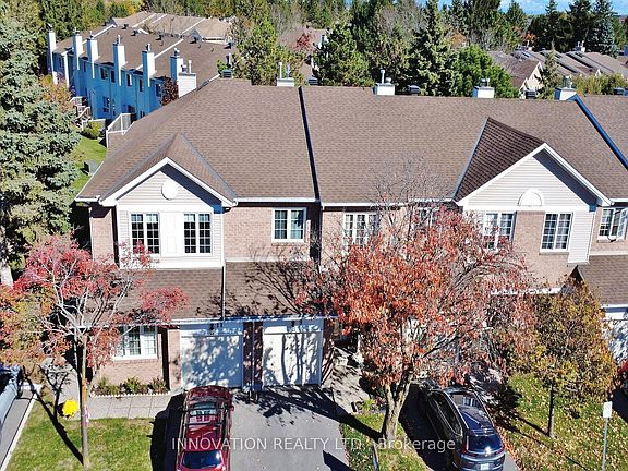 Welcome to this beautifully maintained home in the heart of Centrepointe! Nestled on a quiet street, this bright and spacious 3-bdrm, 3-bath with gleaming hardwood floors on the main & second level, berber carpets stairs & lower level. Neutral colours throughout. The kitchen offers solid oak cabinets in excellent condition, ample storage & counter space, and an eating area with patio doors leading to a private deck and patio-perfect for entertaining. The large primary bedroom includes a walk-in & 5-piece ensuite, with a soaker jet tub + stand-up shower. Two additional bdrms are generously sized. Cozy lower-level family rm featuring a gas fireplace & large window, laundry and ample storage. Enjoy a peaceful yard, no rear neighbours, natural gas BBQ hookup. Furnace & A/C (2022). Condo fees cover exterior maintenance, windows, doors, roofs, driveways, snow removal, and lawn care-ideal for low-maintenance living year-round. You will love this home, the prime location and what it has to offer: steps to parks, schools, restaurants, shopping, College Square, LRT, Algonquin College, Meridian Theatres, and scenic running/walking paths. Don't miss this gem-it has everything you're looking for in sought-after Centrepointe!