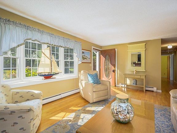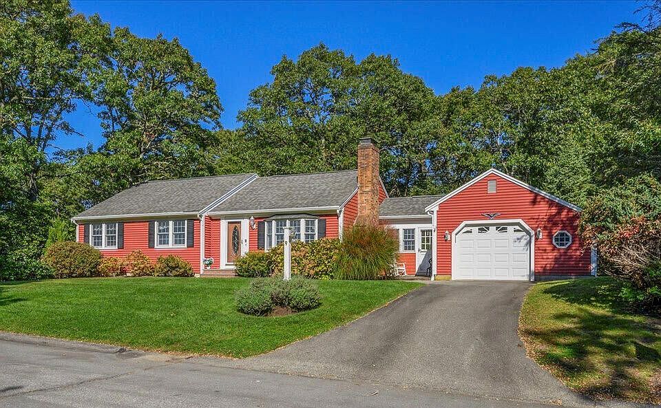 One floor living in a lovely, private setting on a cul de sac in the Headwaters area! Near the bike path which leads to multiple freshwater ponds for swimming, boating, paddling as well as the village center and beyond! Newer granite kitchen with ceramic tile floors, slate appliances, and a dining area with a slider out to a generous deck! Such a relaxing retreat surrounded by lush green landscaping, shared only with the birds! Outdoor shower, attached 1 car garage, and shed. Back inside, hardwood floors stretch from the living room into all 3 bedrooms. A heated breezeway adds to the living space. The primary bedroom has its own bath with a walk-in shower. Gas hot water heat, alarm system, irrigation, full, and unfinished basement with tall ceilings too. Newer front step and sidewalk complete the curb appeal! Whether the cheerful red color is reminiscent of little wintergreen berries for which the street was named, or the cranberries being harvested from the many bogs in the area, this sweet house is sure to charm you! Buyers/agents to confirm all details.