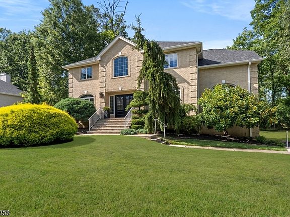 Beautifully maintained and custom-built, 4-bedroom, 3.5-bathroom home sits on a private cul-de-sac in a prime location. Step through the grand two floor foyer, featuring wainscoting and abundant natural light, and you'll immediately feel the inviting elegance of this residence. The first floor boasts 9' ceilings with crown molding, oversized picture windows, gleaming hardwood floors, recessed lighting, and a stunning floor-to-ceiling granite fireplace. The spacious and recently renovated kitchen, complete with granite countertops, opens seamlessly to the dining and family rooms, making it perfect for entertaining. A private office with French doors, full laundry room with storage, and recently updated bathroom complete the main level. Upstairs, the expansive primary suite features a renovated spa-like bathroom and generous walk-in closets. Three additional bedrooms and a full bathroom are located on the opposite side of the second floor, providing comfort and privacy. The fully finished basement offers a full bathroom and versatile space for recreation or guests, with direct access to the attached 3-car garage. Outside, sliding doors lead to a private patio and lush backyard ideal for quiet evenings or gatherings. Additional highlights include: a brand-new roof (2021), two-zone central air and forced hot air heating, public sewer, public water, and natural gas. Conveniently located near top-rated schools, shopping, dining, NJ Transit (bus and train) and major highways.