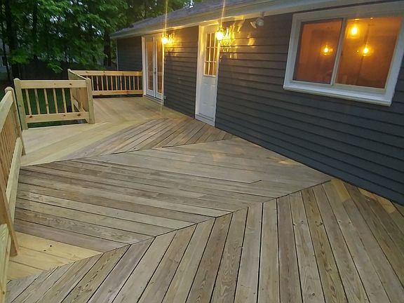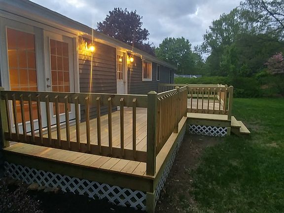 Outstanding renovation! Stunning kitchen with granite counters, arabesque tile backsplash, solid wood cabinet's, stainless steel appliances, and center island. Hardwood floors throughout house. The spacious, open floor plan boasts a quartz fireplace in the dining area, striking family room with French doors opening out to an oversized deck and picturesque landscape; a perfect home for entertaining. This split plan offers a considerable master bedroom with ensuite full bath, his & hers closets with an additional 3 generous sized bedrooms and a first floor laundry area. The finished basement is over 300 sqft and beyond that there is plenty of space for a workshop. There is also a one-car garage, newer windows and roof, new gas furnace and hot water heater, all on a quiet road with tranquil surroundings makes this the perfect home.