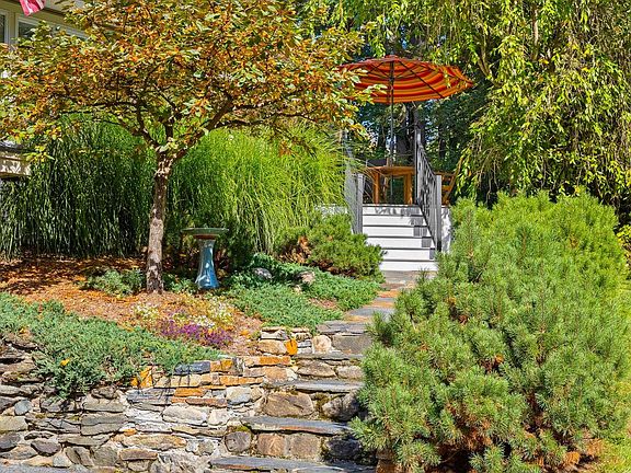 Showings start Saturday 10/21. Walking distance to downtown, minutes from Mink Brook trails, Hanover High School, and Dartmouth College, 9 Wyeth Road is situated on a quiet road off Route 10 just south of town in one of Hanover’s most pleasant neighborhoods. Renovated, updated, and improved by the current owner over the years, natural light pours into the open floor plan of the stylish 1950s three-bedroom single-level ranch. A well-designed kitchen with granite tops and stainless appliances has an eat-at bar that connects to an informal sitting area and living room centered around a wood-burning fireplace. The front door opens to a spacious, elevated deck, stone walls, and steps to the paved drive below. A formal dining room opens onto a second, larger deck overlooking the private, partially fenced backyard of the 0.86-acre lot. A private, first-floor primary suite occupies the west side of the main level with two additional bedrooms and a full bath sharing the east side; hardwood and tile floors are throughout the main level. The lower level has a separate entrance with a mudroom and laundry that leads to a large family/recreation room with a full bath, a wood-burning fireplace, and an independent studio/office or den. The direct entry, single bay garage is excellent for storage, or a smaller vehicle and a large storage shed adds additional functionality at the rear of the yard. A stylish in-town Hanover home offering single-level living in an incredibly convenient location.