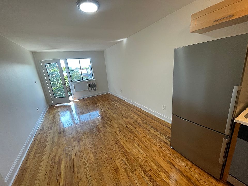Extra Sunny Studio in Elmhurst Queens Unit Features: Hardwood Floors Stainless steel kitchen with its dishwasher and microwave A private terrace with views to trees and the sky One large bathroom 3rd floor unit Building: 3rd floor walk up Laundry facilities in basement Only Water is included in rent $20 Application fee Spring or Summer of 2027 Lease expiration