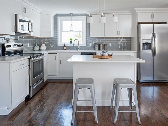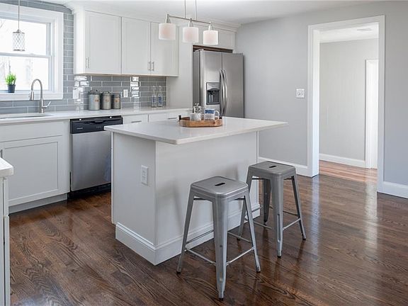 90 Algonquin is an expanded 3 bedroom, 2 bathroom cape that has been completely renovated and sits on a quiet street in Rumford - just a couple minutes to the East Side of Providence. Downstairs features a generous sized bedroom and full bathroom - making one level living possible! A beautiful kitchen with new appliances, quartz counters and a well positioned island opens up to a sun-filled, southward facing dining room. In addition to a cozy living room with a fireplace - a large family room wraps around the back right corner of the home...allowing for two separate living spaces on the 1st floor. Upstairs has a nicely sized bathroom winged by two large dormered bedrooms. Back downstairs, a door off the rear family room leads to the deck and private backyard that backs up to a wooded area. The one car attached garage is both oversized and a drive-thru (garage doors on both front and back). The large basement provides room for ample storage and high enough ceilings to be finished it extra living space is needed. 90 Algonquin is a solid home that has just undergone a major cosmetic renovation recently. Call today - this home will not make it through the weekend!