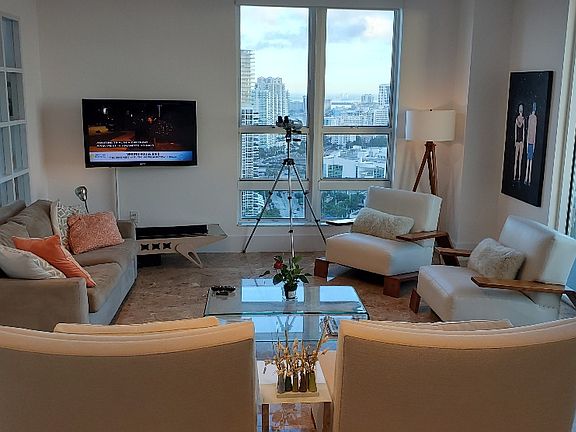 Price available on request with dates of interest. The apartment is newly and beautifully renovated and furnished, and is among the best rentals in the Yacht Club. It is on the northeast corner on the 31st floor (which has higher ceilings and taller windows than floors below it). There is a window wall between the living room and the master bedroom giving panoramic views and a very open feeling. As it is way above all buildings close by, nothing blocks the view and there is total privacy. One balcony faces east to the ocean and the other faces north and west. There is a recliner for two in the living room for watching the 60" TV. There also are TVs in each of the bedrooms. There is WIFI, Blu-ray, and Smart TV. Also a printer/scanner/copier.