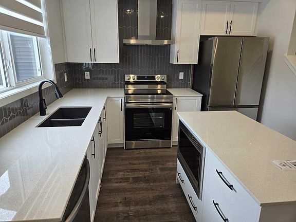 90 Aquila Drive NW is a beautiful brand-new home in the desirable Glacier Ridge community. Designed with an open-concept layout, the main floor features a modern kitchen equipped with stainless steel appliances and stylish laminate flooring. The spacious layout seamlessly connects the living, dining, and kitchen areas, creating an inviting atmosphere for both daily living and entertaining. Recessed pot lights add a warm ambiance throughout.