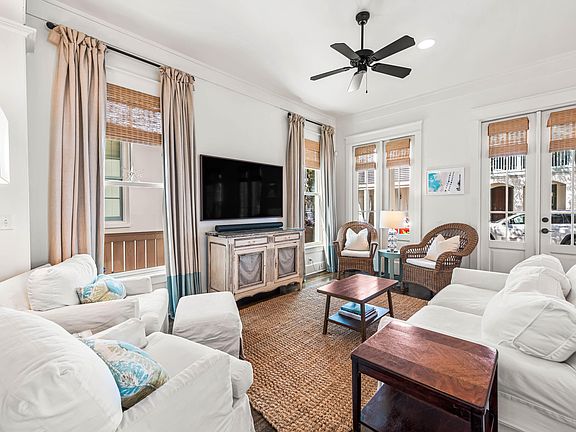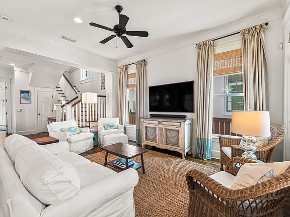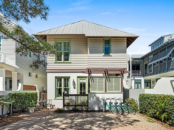Welcome to this story book Rosemary Beach cottage on Atticus Road! This cozy three-bedroom home, plus an extra bunk room, offers a perfect mix of convenience and calmness.On the first floor, you'll find a beautifully updated kitchen flowing seamlessly into the dining and living areas, creating a welcoming atmosphere filled with natural light. A first floor guest bedroom is the perfect option for those who find stairs a challenge.Head upstairs to the Primary Bedroom with its impressive, wooden cathedral ceiling, large ensuite bath, and an expansive balcony overlooking the serene greenery of Atticus Rd. In addition, you will find the cheery, light and bright guest bedroom and adorable bunk room separated by a shared bath. Enjoy the perks of living in this community, SEE MORE from the private pool and cabanas at the owners' club, the 4 additional community pools, the fitness center and tennis courts to the stunning Gulf of Mexico accessed by 9 private community walkovers. You are also near the many shops and restaurants that are located in the heart of Rosemary beach.