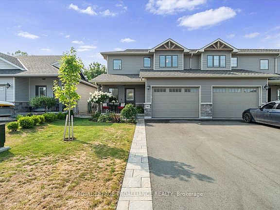 This stunning end unit townhome, crafted by Farnsworth Construction in 2022, is a true masterpiece. Nestled in a charming town of Stirling, it is surrounded by newly built homes and is conveniently located just a short drive from Belleville or Trenton. The residence boast three spacious bedrooms and three luxurious baths, each show casing high quality finishes that exude elegance. As you steps into the main level, a grand foyer with tile floors welcomes you. The kitchen features quartz countertops, a tile backsplash, and quality cabinetry with slow-close doors and drawers. The open-concept kitchen, dining, and great room area, with its 9' ceilings, beautiful stone wall accent, and electric fireplace, create an inviting and sophisticated ambiance. Oversized windows and patio doors flood the space with natural light, enhancing the home's warm and inviting atmosphere. Ascending to the second level, you'll find a generously sized master bedroom complete with a loads of natural light and a three-piece ensuite featuring a walk-in tiled shower. Two additional bedrooms and a four-piece bath complete this level, all adorned with stunning laminate flooring. Stepping outside, the backyard offers a private oasis with privacy fencing, mature trees, a beautiful patio, and breathtaking gardens. The town of Stirling is a treasure trove of local attractions, including the Stirling Festival Theatre, Oak Hills Golf with its 36 holes, Kings Mills Conservation Area, and Farm town Park. Outdoor enthusiasts will love the Trans Canada Trail for walking or ATVing. This home is a true gem and an absolute must-see. You will be captivated by its elegance and beauty!