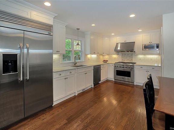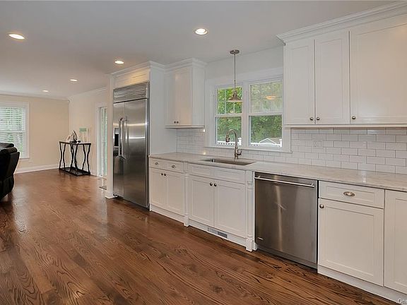 Fully renovated, expanded this Larchmont Woods Colonial doesn't disappoint. Situated on .33 acre this beautiful 4 bedroom home w/3 and 1 half baths offers exceptional space and light 2 story entry, dream kitchen w/ generous granite counter space and eat in area sits adjacent to the great room. Plenty of space for all to cook and hang out. Powder room conveniently located on the first floor. Living room w/ wood burning fireplace, spacious dining room make this an ideal home to spend time w/ family and friends. The 2nd floor features an enormous master suite with tray ceiling, generous walk in closet, spa like bath w/2 sinks. 3 additional bedrooms w/hall bath and laundry conveniently located here. Lower level showcases a finished space ideal for a playroom or gym. There is an additional room which is ideal for a home office. The backyard is expansive and lush. Pool potential here. Less than ten minutes to the town of Larchmont and the train. Addt'l 691 finished sq ft in basment.