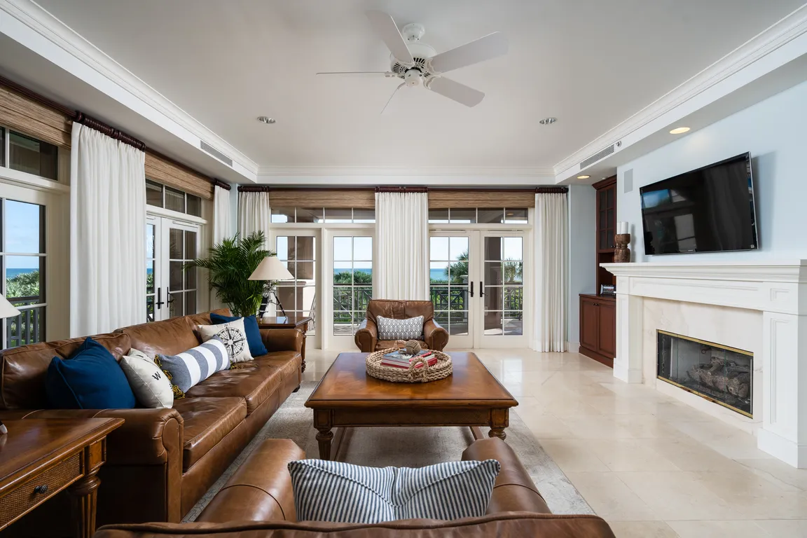 Exceptional oceanfront corner location Condo at Orchid Island Golf & Beach Club. 3Br/Study/3.5Ba. 3,309 a/c sq. ft. Updated Kitchen with shaker cabinetry & marble counters with Thermador appl. Living area with gas fireplace flanked by custom bookshelves. Expansive primary suite with updated bath shower, floors, cabinets, countertops, & soaking tub. Two ...