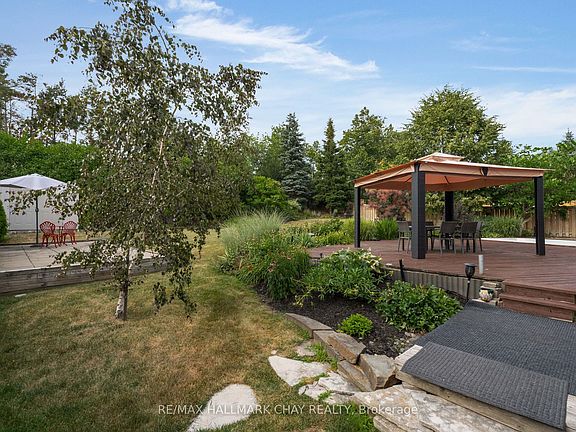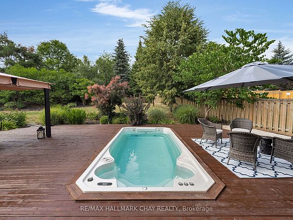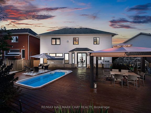 Welcome to 90 Birkhall Place - an EXCEPTIONAL home in the sought-after family-centric community of Innis-shore in Barrie. Offering stunning curb appeal as one of the larger lots of the neighbourhood, this professionally landscaped property backs onto lush trails, tranquil green space, and a serene stream. Bold, elegant foyer with double door entry, open to above, leads into this meticulously maintained, upgraded 3,600+ sqft of finished living space offering 4+1 bedrooms, 3+1 bathrooms, full finished lower level. Extend your functional living space outdoors and appreciate the added luxury of your own personal swim spa. From tranquil morning coffee to al fresco dinners with loved ones, this backyard is more than a feature -it's a lifestyle. With high-end finishes throughout this home, you will notice attention to detail, style and function at every turn. Pride of ownership and thoughtful design is evident with seamless flow from room to room and updates that elevate both style & comfort. Chef-inspired kitchen boasts stunning two-tone cabinetry, quartz countertops, undermount sink, porcelain floor tiles, waterfall island, bev fridge, plenty of cabinets, as well as top-tier appliances, perfect for everyday meals & gourmet creations. Walk out to expansive rear deck from bright breakfast room. Family rm feature wall with chic b/I shelves, cozy gas fireplace for cooler evenings, accent windows - overlooking the fully fenced private rear yard. Combined living/dining features hardwood floor, two-story windows, crown moulding, decorative columns -pure sophistication. Private zone of this home offers a flexible loft space -home office, study zone -the choice is yours. Spacious primary suite with gas fireplace, spa-like ensuite, abundance of closet space. Three bedrooms, main bath complete the upper level. Full, finished lower level extends your interior living space further with an additional bedroom and full bath, spacious rec room with pool table and entertainment station.